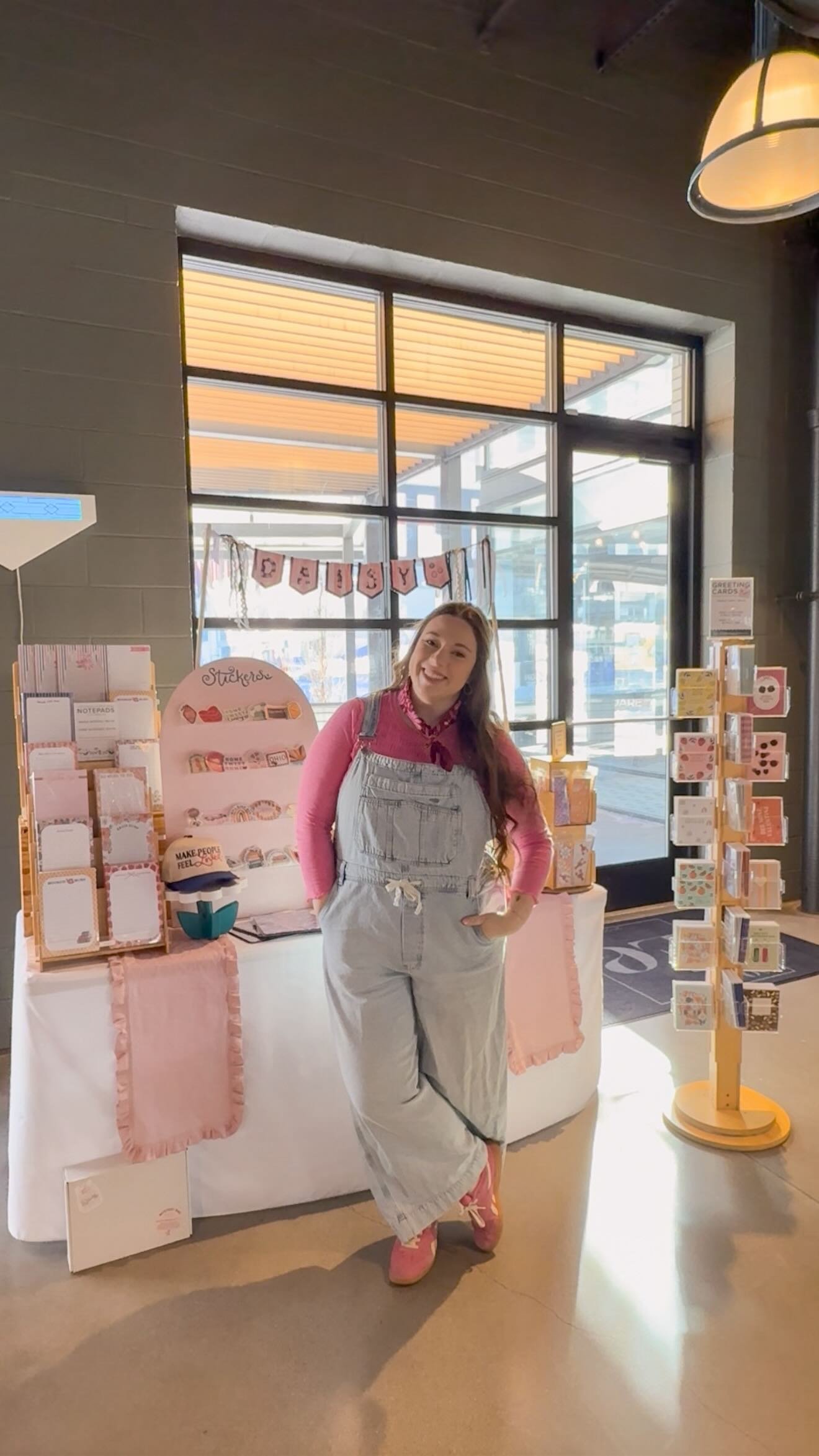 Hi hi! I’m Kelsey, the graphic designer, artist, shop owner and dreamer behind KHD & Daisy. You can find me designing away in my workshop, usually wearing a pair of overalls with a McDonald’s Coca Cola on my desk. I’m passionate about good design, pretty typography and aesthetic color palettes. One of my focuses as an artist is intentionality. I strive for details and purpose in my design decisions, whether I’m working with a fellow small business owner, painting a mural or designing invitations for special events.
