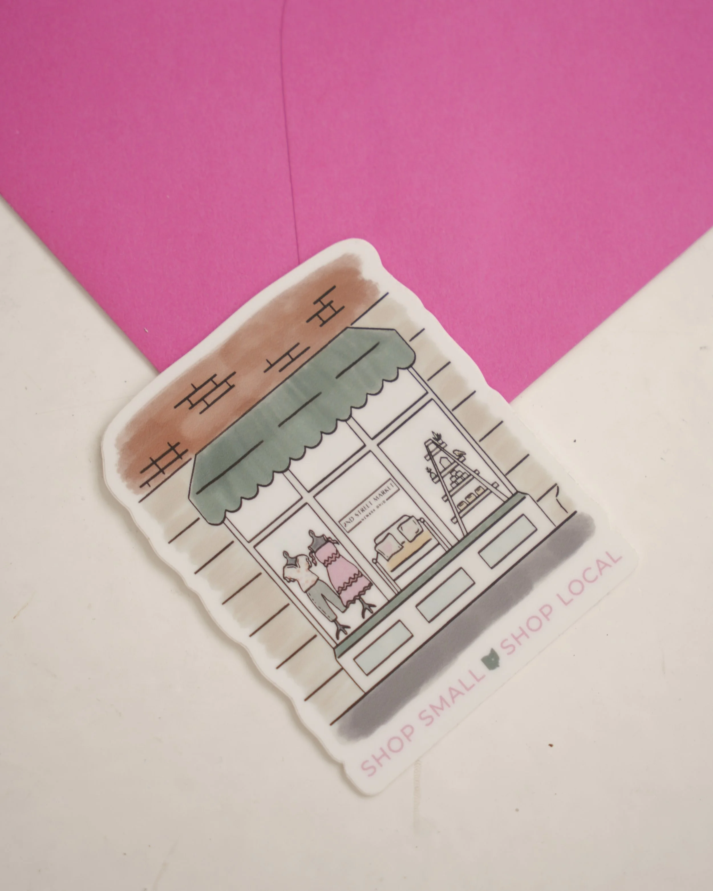 Colorful storefront postcard design for Annabelle Arthur Boutique in Hyde Park, Cincinnati.